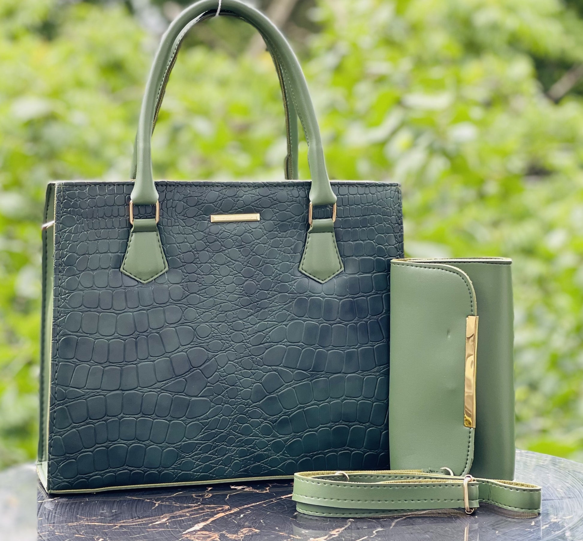 Elegant Crocodile Textured Handbag Premium Olive Green